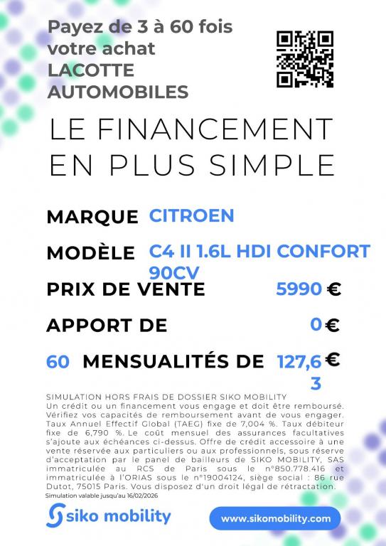 | Version | C4 II 1.6L HDI CONFORT 90XCV |