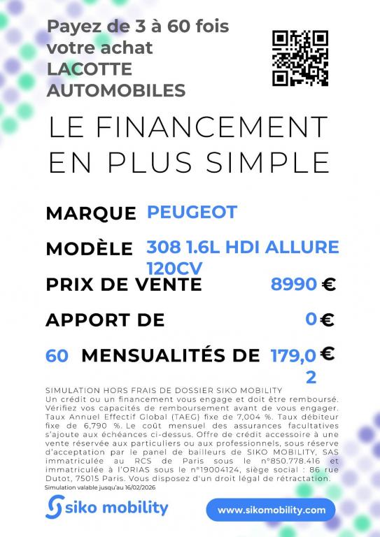 | Version | 308 1.6L BLUEHDI ALLURE 120CV |